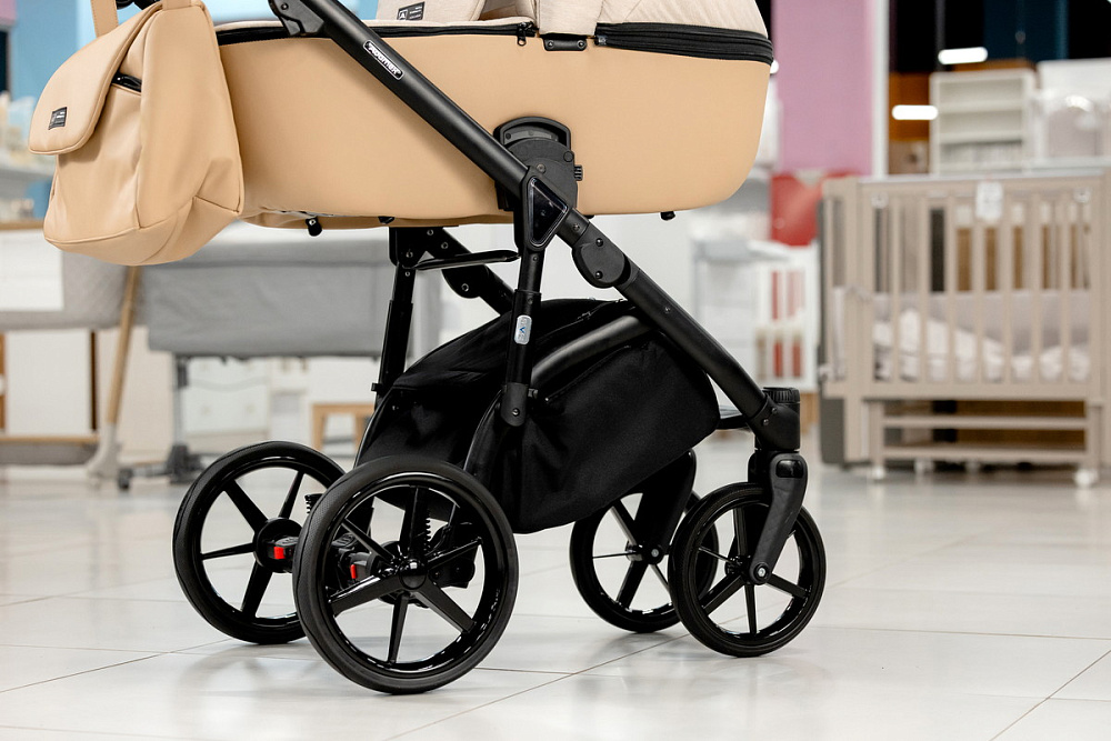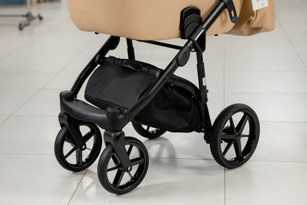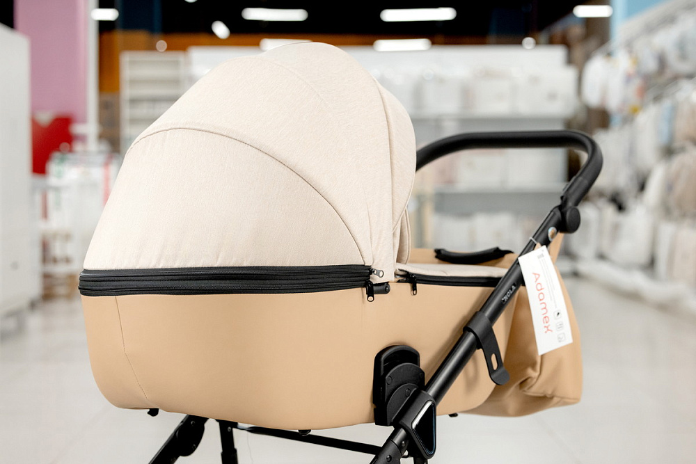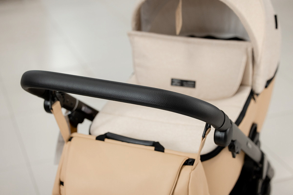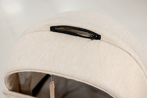 Корпус люльки пластиковый, обтянут эко-кожей. В донышко люльки встроено регулируемое вентиляционное окно. Люлька оборудована регулируемым по высоте подголовником, регуляция расположена с внешней стороны.Внутренняя обивка выполнена из хлопковой ткани.Люлька реверсивная, ее можно установить в положение «ребенок лицом к родителю», «ребенок лицом к направлению движения».Капюшон люльки 3-х сегментный капюшон с козырьком от солнца и дополнительным 4-м сегментом на молнии, под которым расположена анти-москитная сетка для проветривания. В капюшон встроена ручка для переноски люльки, ручка расположена под молнией.Накидка крепится к люльке с помощью молнии. Накидка оснащена откидным клапаном под клапаном расположено смотровое окно.