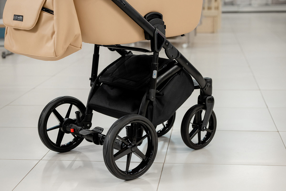 Рама выполнена из сплава алюминия. Рама оборудована ручкой для переноски в сложенном положении.Ручка, регулируемая по высоте. Задняя колесная база оборудована тормозной системой.Задняя колесная база оборудована амортизаторами с возможностью регулировать жесткости.Рама имеет дополнительные центральные амортизаторы с возможностью блокировки.Колеса выполненыиз вспененной резины не требующие подкачки.Передние колеса поворотные с возможность блокировки в прямом положении.