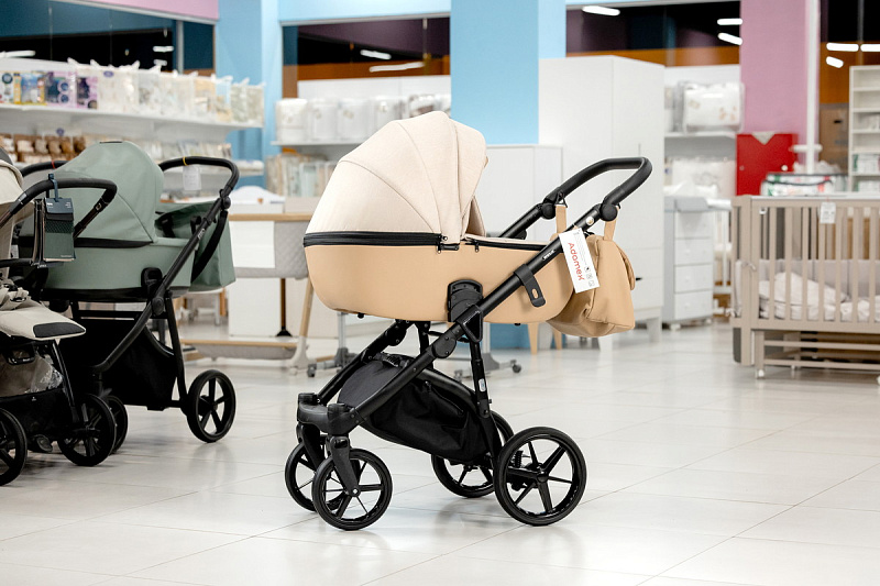 Корпус люльки пластиковый, обтянут эко-кожей. В донышко люльки встроено регулируемое вентиляционное окно. Люлька оборудована регулируемым по высоте подголовником, регуляция расположена с внешней стороны.Внутренняя обивка выполнена из хлопковой ткани.Люлька реверсивная, ее можно установить в положение «ребенок лицом к родителю», «ребенок лицом к направлению движения».Капюшон люльки 3-х сегментный капюшон с козырьком от солнца и дополнительным 4-м сегментом на молнии, под которым расположена анти-москитная сетка для проветривания. В капюшон встроена ручка для переноски люльки, ручка расположена под молнией.Накидка крепится к люльке с помощью молнии. Накидка оснащена откидным клапаном под клапаном расположено смотровое окно.