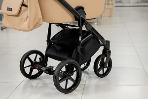 Рама выполнена из сплава алюминия. Рама оборудована ручкой для переноски в сложенном положении.Ручка, регулируемая по высоте. Задняя колесная база оборудована тормозной системой.Задняя колесная база оборудована амортизаторами с возможностью регулировать жесткости.Рама имеет дополнительные центральные амортизаторы с возможностью блокировки.Колеса выполненыиз вспененной резины не требующие подкачки.Передние колеса поворотные с возможность блокировки в прямом положении.