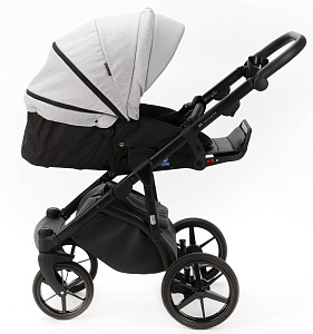 Корпус люльки пластиковый, обтянут эко-кожей. В донышко люльки встроено регулируемое вентиляционное окно. Люлька оборудована регулируемым по высоте подголовником, регуляция расположена с внешней стороны.Внутренняя обивка выполнена из хлопковой ткани.Люлька реверсивная, ее можно установить в положение «ребенок лицом к родителю», «ребенок лицом к направлению движения».Капюшон люльки 3-х сегментный капюшон с козырьком от солнца и дополнительным 4-м сегментом на молнии, под которым расположена анти-москитная сетка для проветривания. В капюшон встроена ручка для переноски люльки, ручка расположена под молнией.Накидка крепится к люльке с помощью молнии. Накидка оснащена откидным клапаном под клапаном расположено смотровое окно.