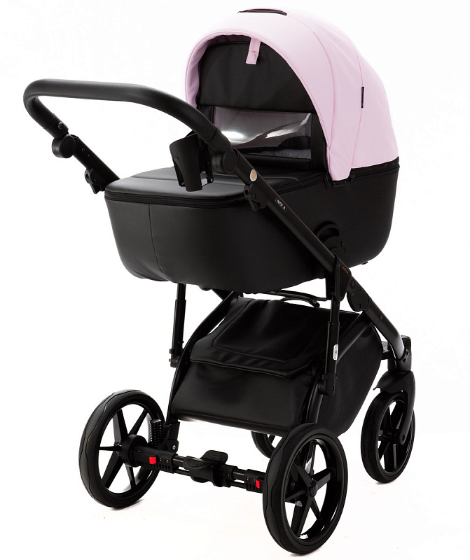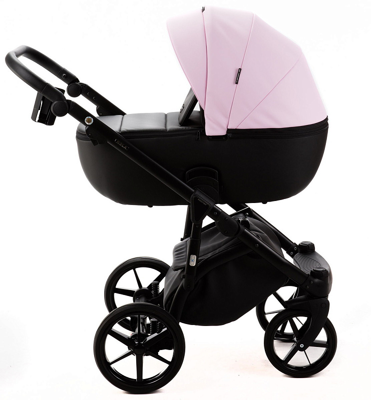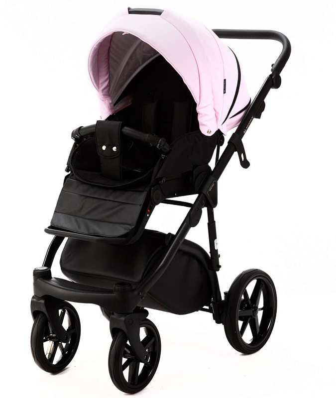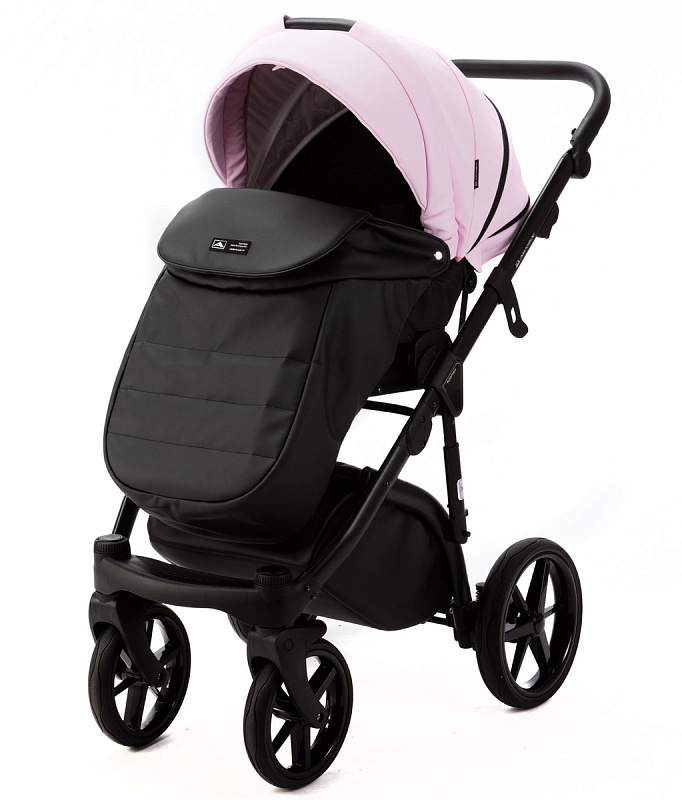 Детская коляска Adamex Nola Deluxe 2 в 1 N-SD101 (РОЗОВ.ЗЕФИР КОЖА + ЧЕРН. КОЖА)