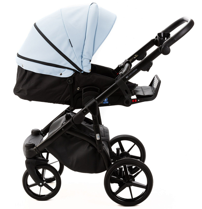 Детская коляска Adamex Nola Deluxe 3 в 1 N-SD112 (ГОЛУБАЯ КОЖА + ЧЕРН.КОЖА)
