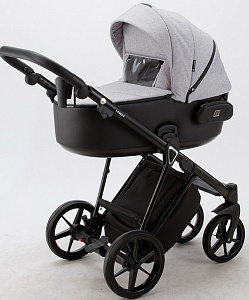 Детская коляска Adamex Porto 2 в 1 PO-PS12 (СВ.СЕР.БЕРЕЗКА+ЧЕРН.КОЖА)