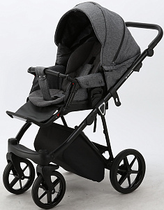 Детская коляска изготовлена из качественных материалов, верхнее покрытие из влагоотталкивающей ткани. В капюшоне предусмотрена сетка для проветривания. Эргономичный прогулочный блок оснащен удлиняющимся козырьком. Спинка сиденья регулируемая, с мягкими ремнями безопасности. Шасси оборудованы не прокалываемыми колесами с амортизаторами.