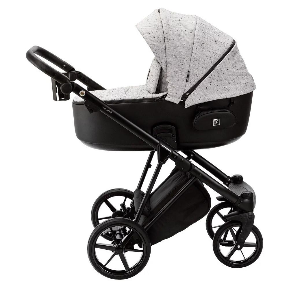 Детская коляска Adamex Porto 3 в 1 PO-PS12B (СВ.СЕР.БЕРЕЗКА+ЧЕРНАЯ КОЖА)