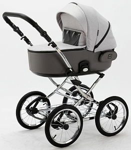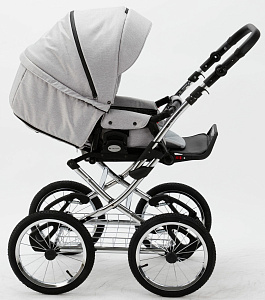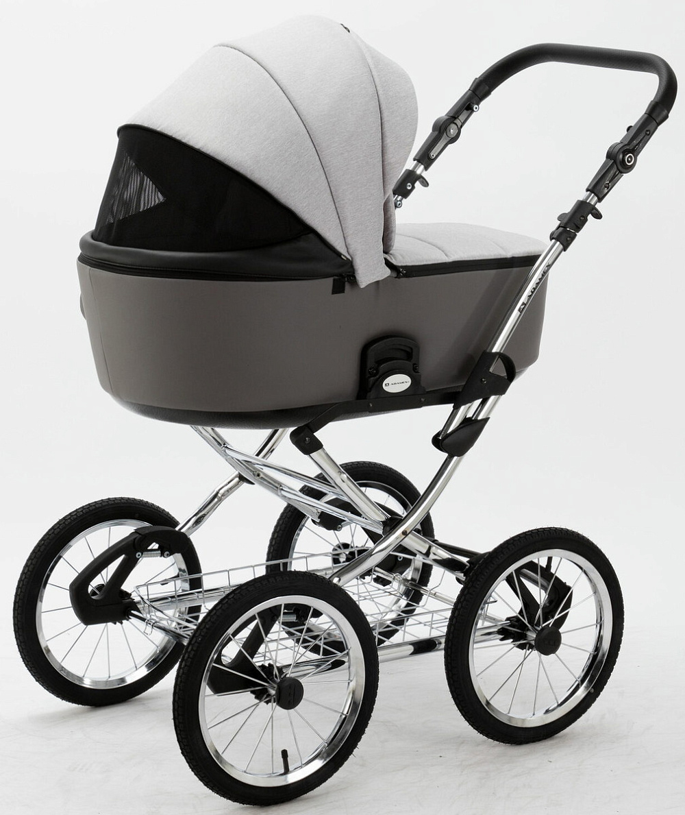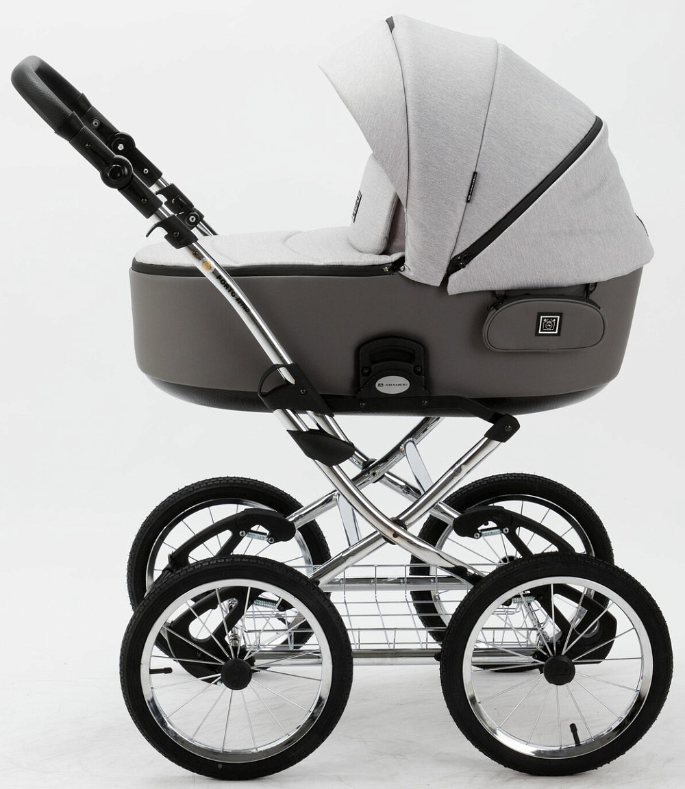 Детская коляска Adamex Porto Retro 3 в 1 PO-PS79 (СВ.СЕРЫЙ+Т.СЕРАЯ КОЖА)