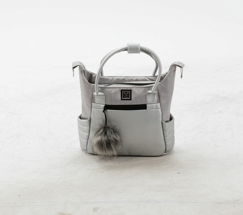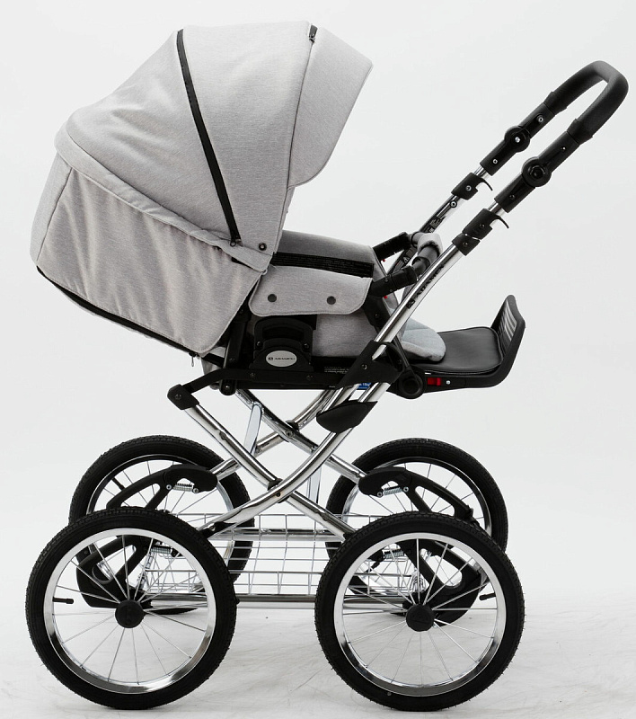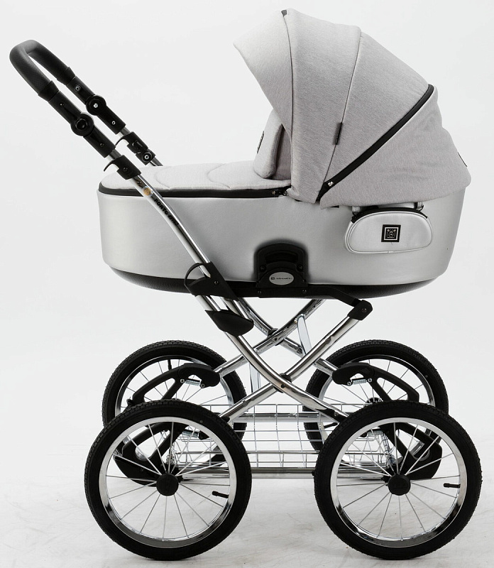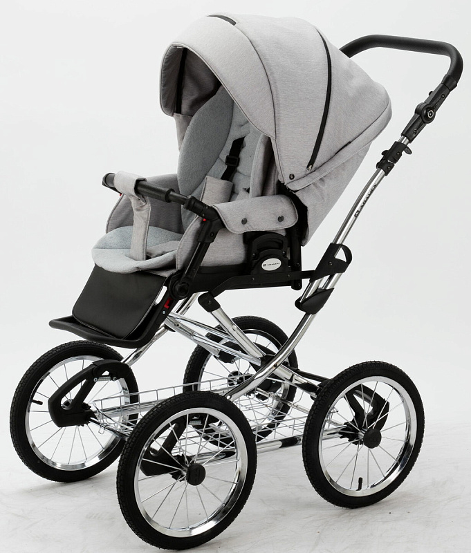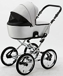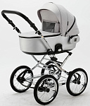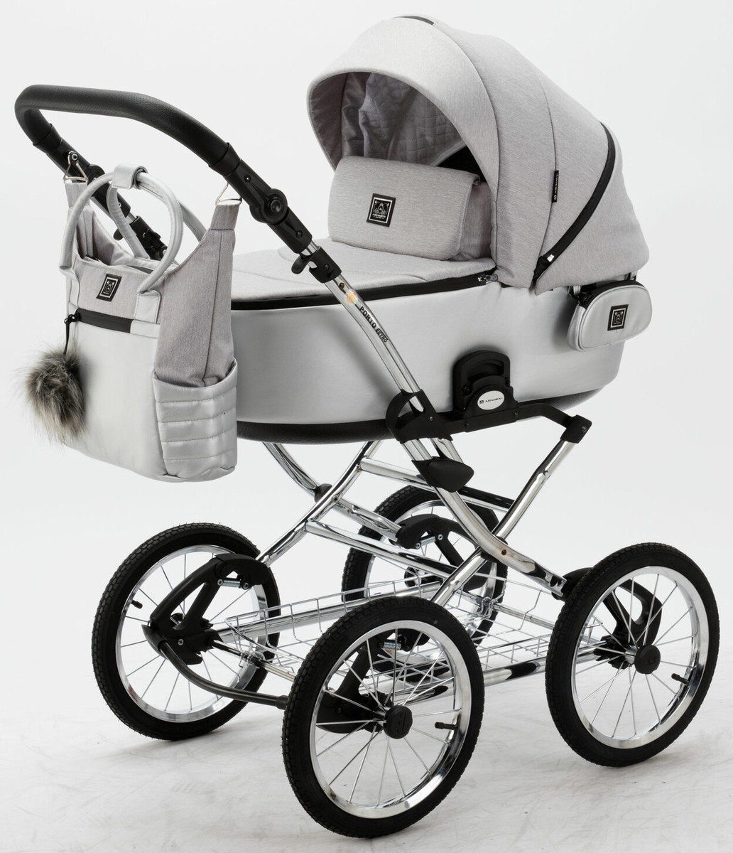 Детская коляска Adamex Porto Retro 3 в 1 PO-PS89 (СВ.СЕРЫЙ+СЕРЕБРИСТАЯ КОЖА)