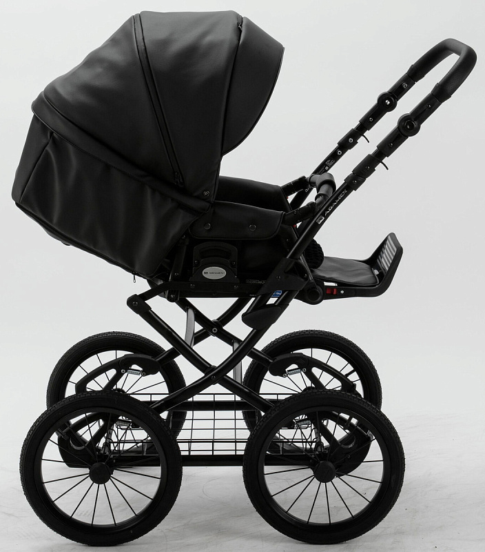 Детская коляска Adamex Porto Retro Deluxe 3 в 1 PO-SA02 (ЧЕРН.КОЖА)