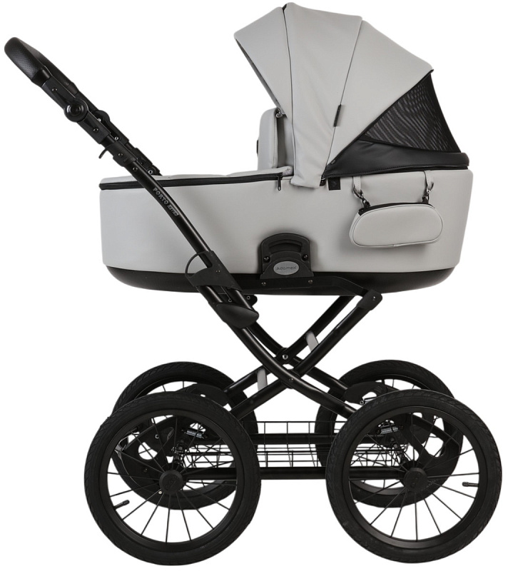 Детская коляска Adamex Porto Retro Deluxe 3 в 1 PO-SA03 BLACK (СВ. СЕРАЯ КОЖА)