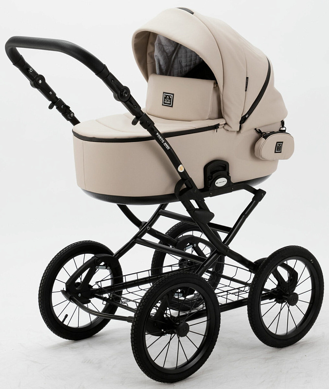 Детская коляска Adamex Porto Retro Deluxe 3 в 1 PO-SA07 (СВ.БЕЖ.КОЖА)