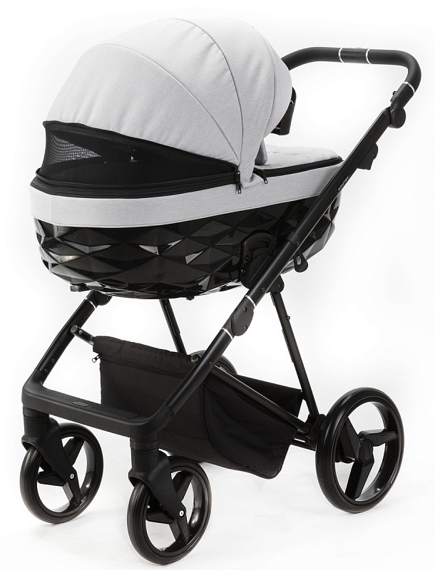 Многофункциональная детская коляска ADAMEX QUANTUM имеет большую стильную люльку, которая имеет трехмерный дизайн, регулируемый капюшон с выдвижным солнцезащитным козырьком и регулируемой вентиляцией. Сумка для мамы с аксессуарами. В нижней части люльки находится регулируемое вентиляционное отверстие. Накидка на люльку крепится с помощью молнии. Накидка оснащена ветрозащитным клапаном, под которым расположено окошко, позволяющее поддерживать зрительный контакт с ребенком.