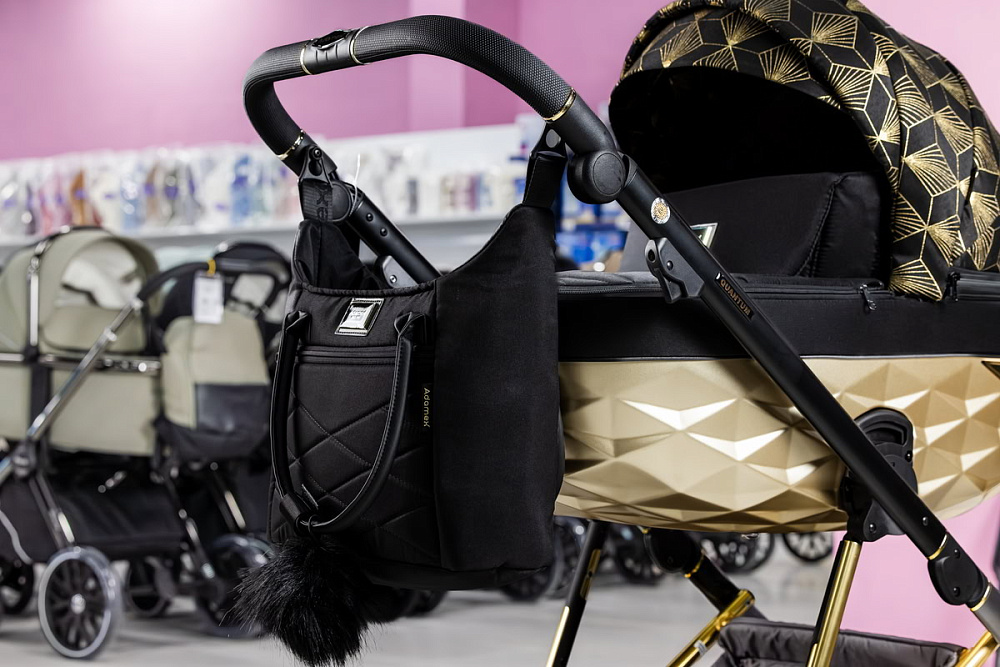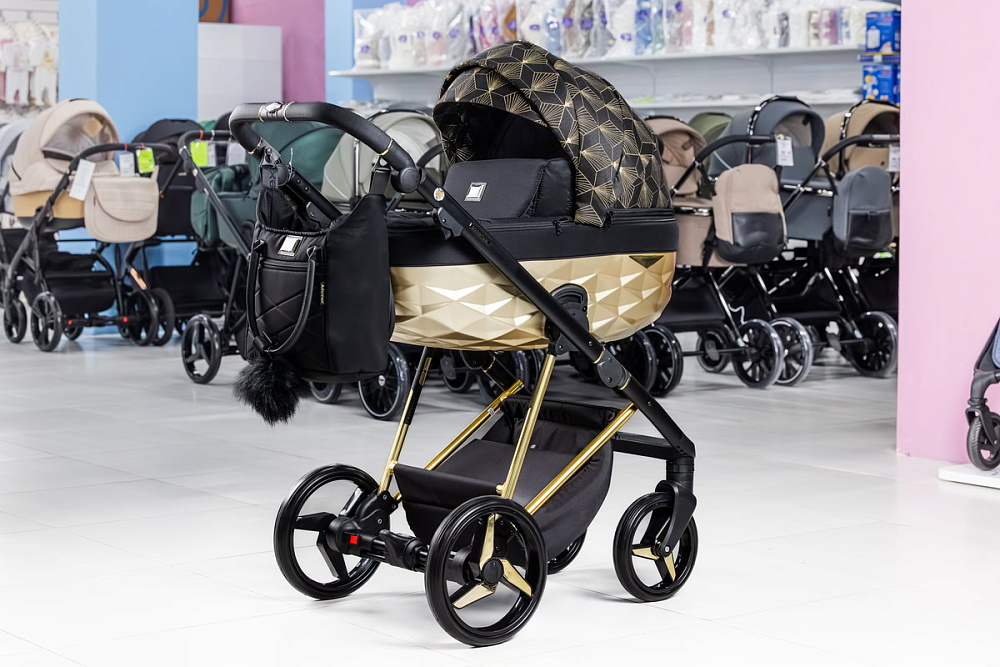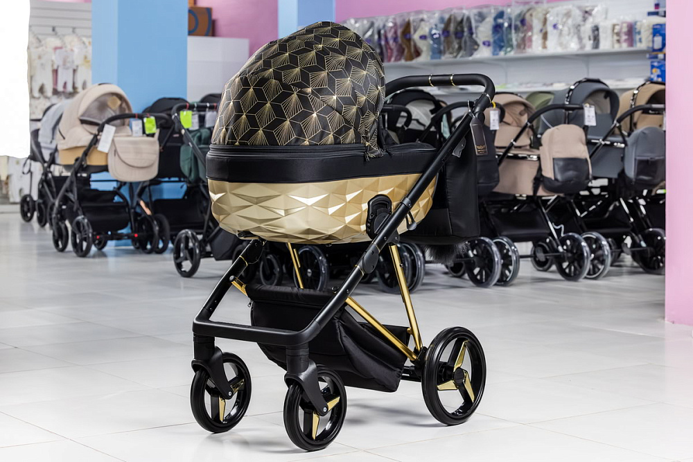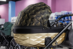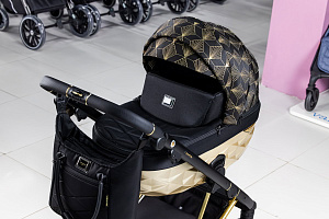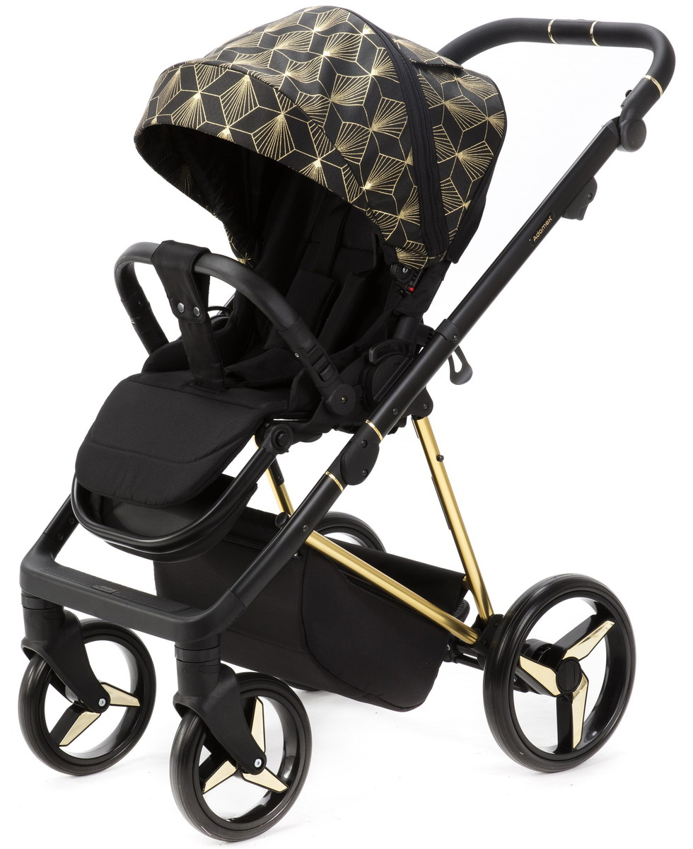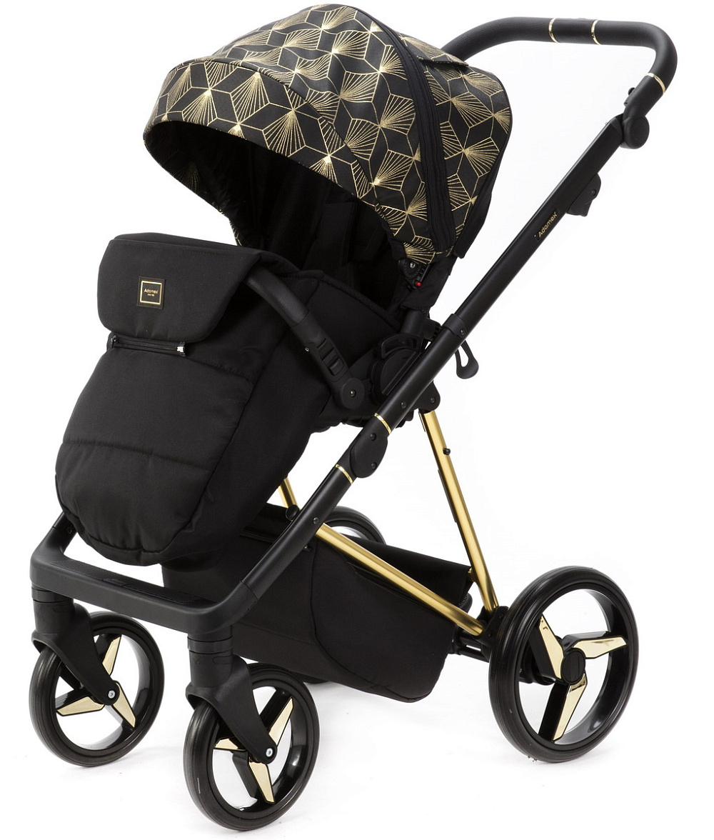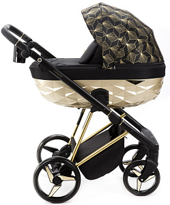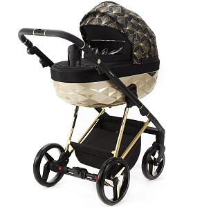 Детская коляска Adamex Quantum Star 3 в 1 Q-STAR58 (ЧЕРНЫЙ+ЗОЛОТОЙ ОРНАМЕНТ+ЗОЛОТО ДНО+ЗОЛОТО РАМА)