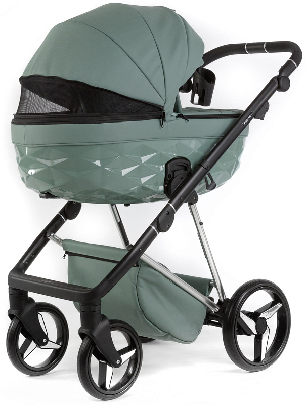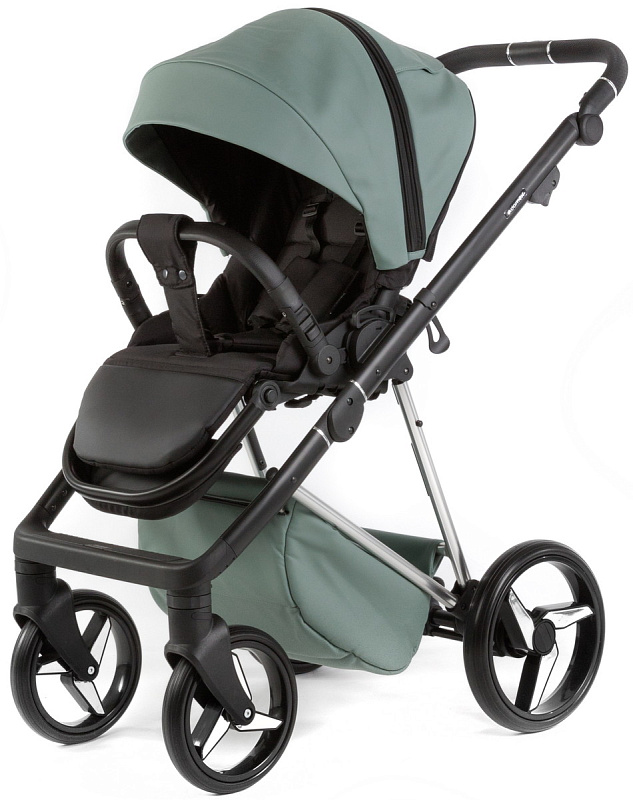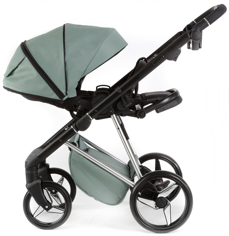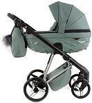 Детская коляска Adamex Quantum Superstar Deluxe 3 в 1 Q-STAR150-K (СЕРО-ЗЕЛЕН.КОЖА+СЕРО-ЗЕЛЕН.ДНО+ХРОМ.РАМА)