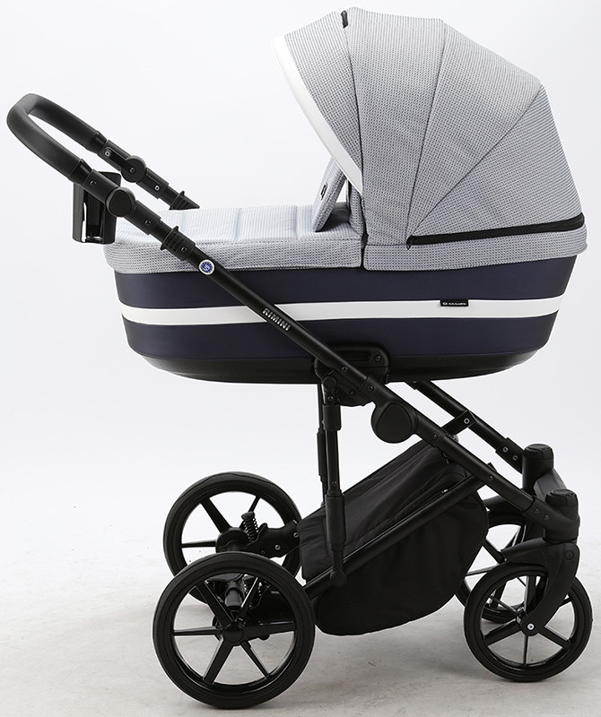 Детская коляска Adamex Rimini 2 в 1 RI27-LUX ГОЛУБ.ЖАККАРД+СИН.ПЕРЛ.КОЖА+БЕЛ.ОТДЕЛКА