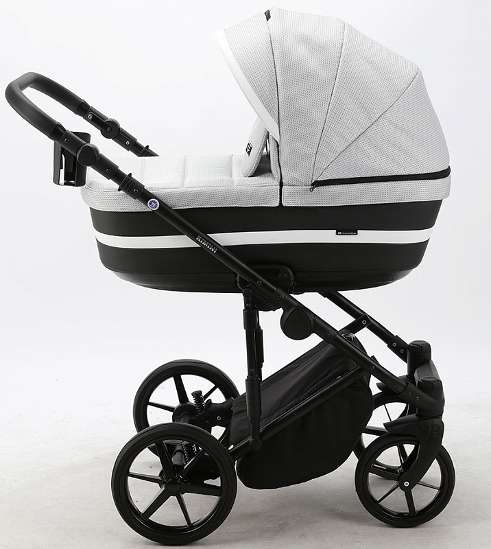 Детская коляска Adamex Rimini 2 в 1 RI29-LUX СВ.СЕР.ЖАККАРД+ЧЕРН.КОЖА+БЕЛ.ОТДЕЛКА