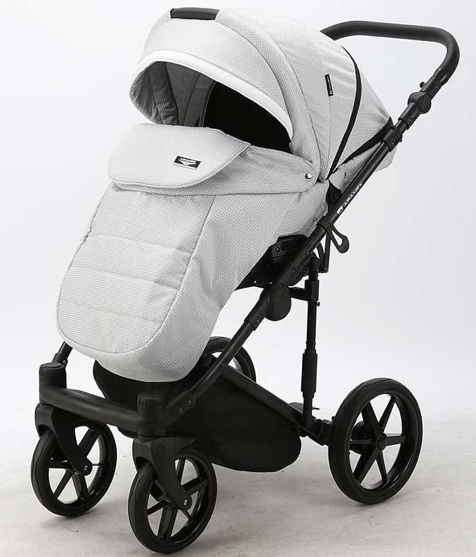 Детская коляска Adamex Rimini 2 в 1 RI29-LUX СВ.СЕР.ЖАККАРД+ЧЕРН.КОЖА+БЕЛ.ОТДЕЛКА