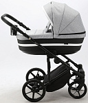 Детская коляска Adamex Rimini 2 в 1 RI32-LUX СЕР.ЖАККАРД+ЧЕРН.КОЖА+БЕЛ.ОТДЕЛКА