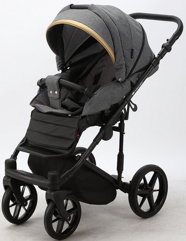 Детская коляска Adamex Rimini 2 в 1 RI07-LUX Т.СЕР+Т.СЕР.КОЖА+ЗОЛОТО.ОТДЕЛКА