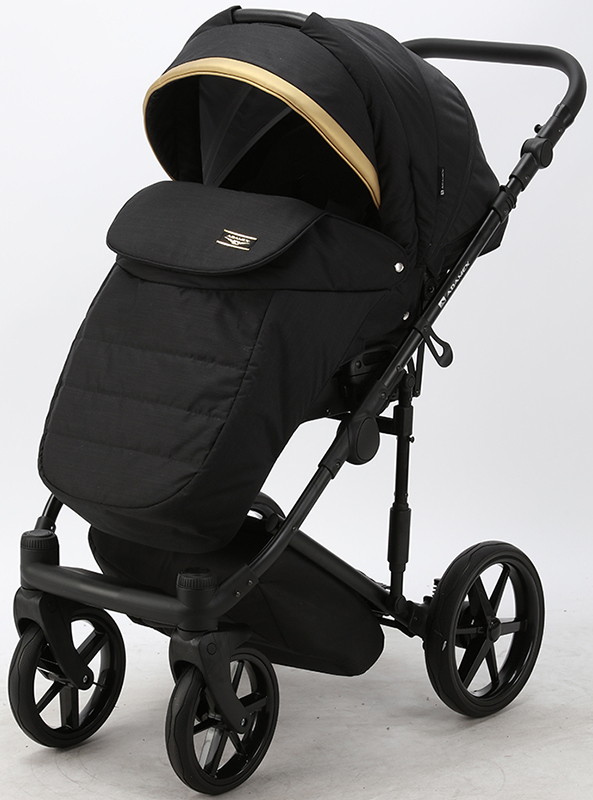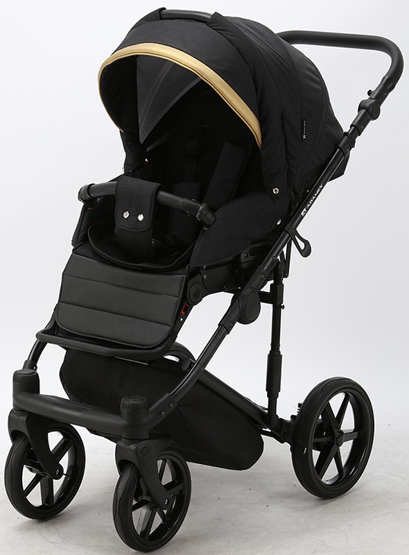 Детская коляска Adamex Rimini 3 в 1 RI01-TIP ЧЕРНЫЙ+ЧЕРН.КОЖА+ЗОЛОТО ОТДЕЛКА