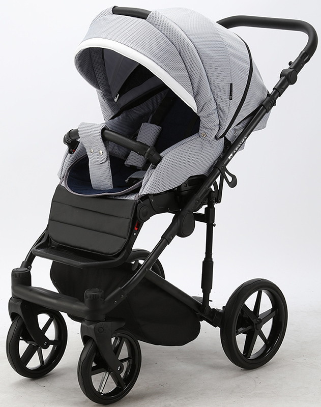 Детская коляска Adamex Rimini 3 в 1 RI27-LUX ГОЛУБ.ЖАККАРД+СИН.ПЕРЛ.КОЖА+БЕЛ.ОТДЕЛКА
