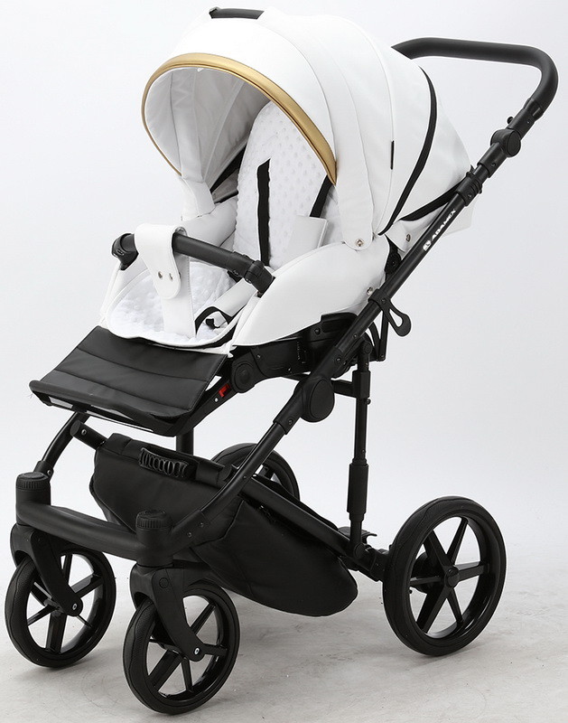 Детская коляска Adamex Rimini Deluxe 2 в 1 RI200 БЕЛ.КОЖА+ЗОЛОТО.ОТДЕЛКА