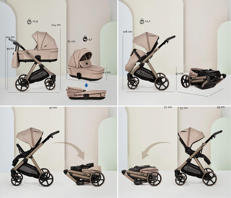 В комплект входит современный прогулочный блок, который можно установить в обоих направлениях на раму коляски и сложите их вместе с рамой до