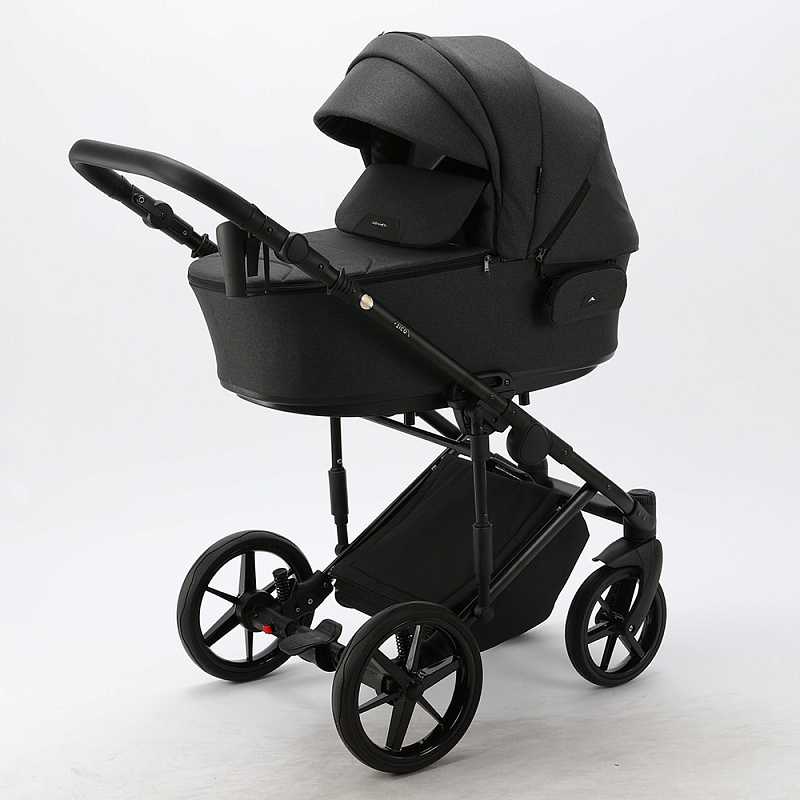 Коляска изготовлена из безопасных материалов, оборудована облегченными шасси из алюминиевого сплава и амортизацией на колесах. В сложенном виде не занимает много места. Внутренняя и внешняя обивка произведены из качественных материалов. Люлька просторная, имеет вентиляцию дна, регулируемый подголовник. Прогулочный блок оборудован спинкой с регулировкой по высоте, ремнями безопасности с мягкими накладками.