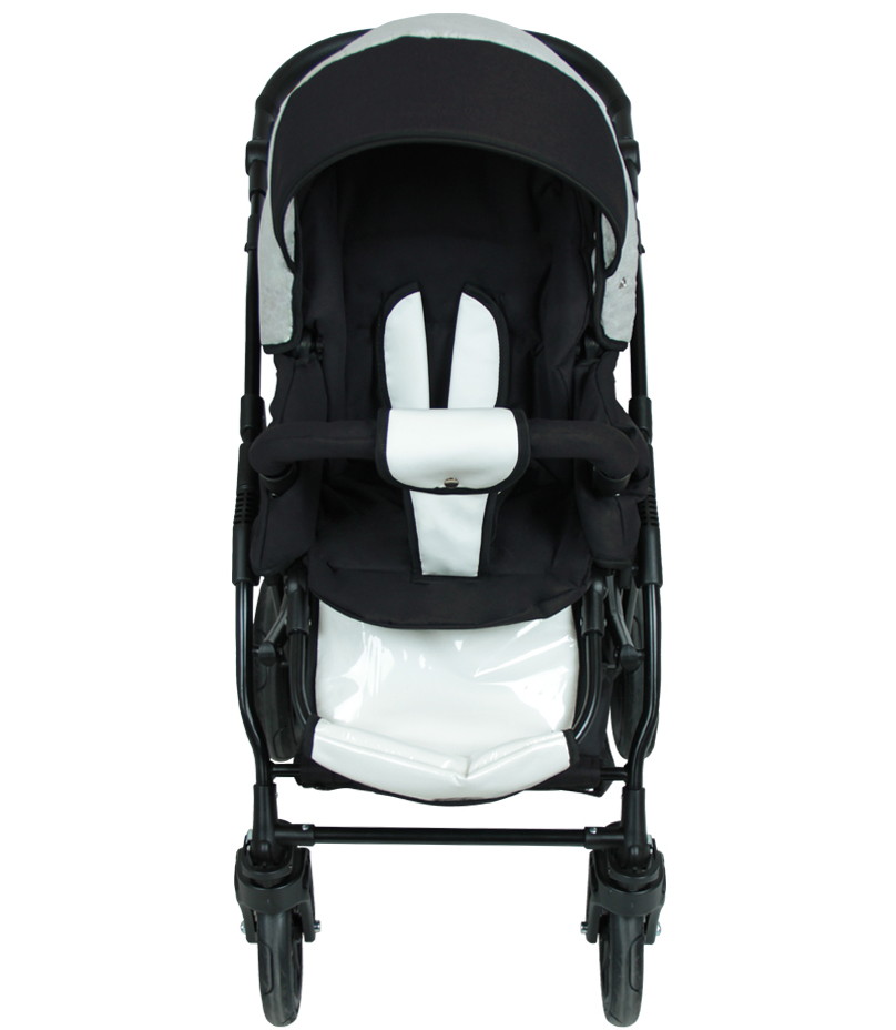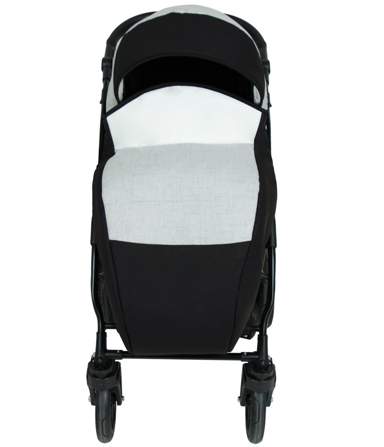 Дизайн выполнен с вставками из экокожи на накидке, из этого же материала - подножка, межпаховая перемычка и накладки на плечах и замке ремней безопасности. Сидение раскладывается в комфортное спальное место. Съемный бампер мягкий, обтянут текстилем. В капюшоне - вентиляционное окошко с текстильным клапаном. На задней стенке накидки - удобный кармашек для мелочей на молнии с яркой отделкой.