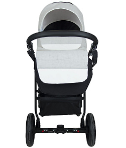 Каркасная люлька - глубокая и просторная - снаружи обшита текстилем с водоотталкивающей пропиткой с яркими вставками из экокожи. Внутренний чехол из 100% хлопка снимается для стирки. Наполнитель матрасика - ППУ. При необходимости можно поднять подголовник, что становится актуальным, когда ребенок подрастает и начинает интересоваться окружающим миром, но для прогулочного блока еще рановато. Накидка на ножки надежно фиксируется кнопками, предусмотрен ветрозащитный отворот. От солнца защитит козырек, кроме того, в жаркую погоду пригодится вставка из москитной сетки для вентиляции, которая закрывается текстильным клапаном на молнии. Снятая люлька мягко и безопасно укачивает малыша.
