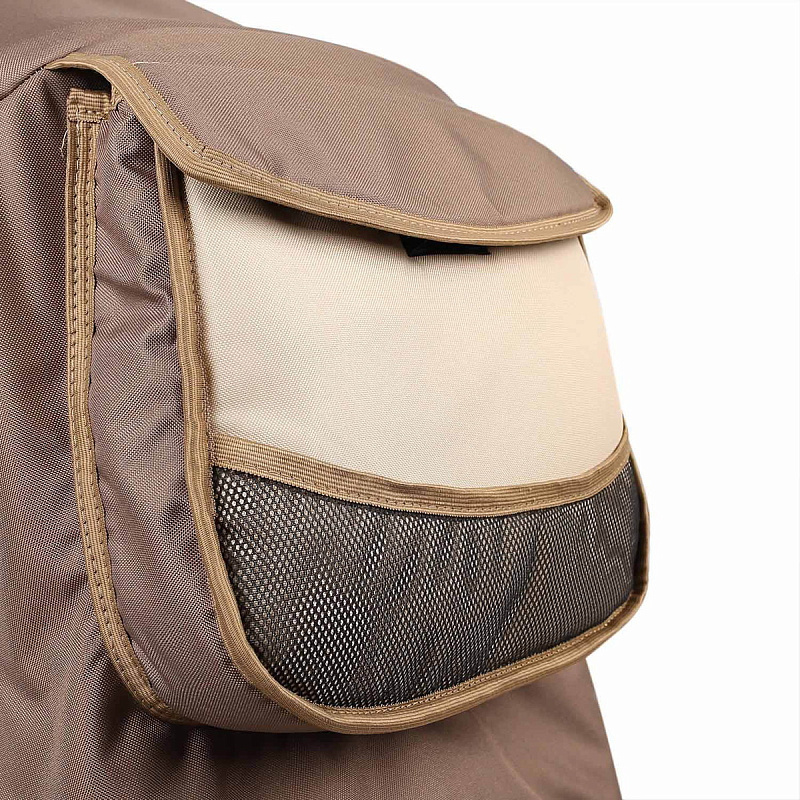 - Капюшон с большим карманом и сетчатыми отделениями по бокам для бутылочек.