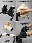 Для защиты от осадков и ветра предусмотрен глубокий капор с ветрозащитой, теплый чехол на ножки и дождевик, а также есть дополнительное окно, которое можно закрыть при необходимости.