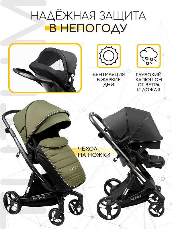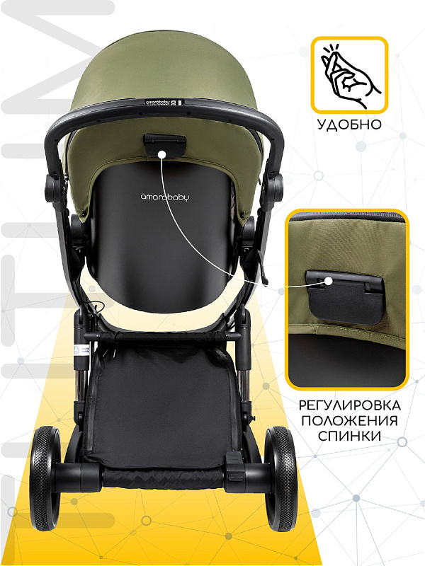 В комплекте с коляской идет стильный рюкзак, в который можно положить все необходимое для мамы и ребенка. Детская коляска для малыша Amarobaby легко складывается, транспортируется и ее удобно хранить. Данная универсальная коляска поможет облегчить жизнь родителей и обеспечит максимальный