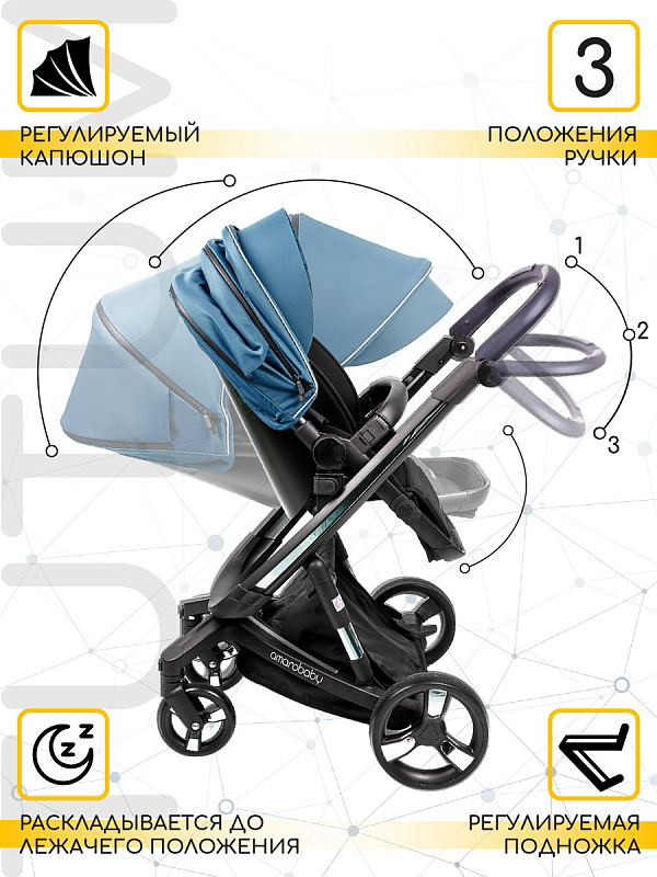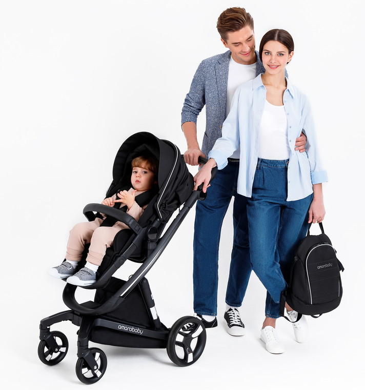 В комплекте с коляской идет стильный рюкзак, в который можно положить все необходимое для мамы и ребенка. Детская коляска для малыша Amarobaby легко складывается, транспортируется и ее удобно хранить. Данная универсальная коляска поможет облегчить жизнь родителей и обеспечит максимальный
