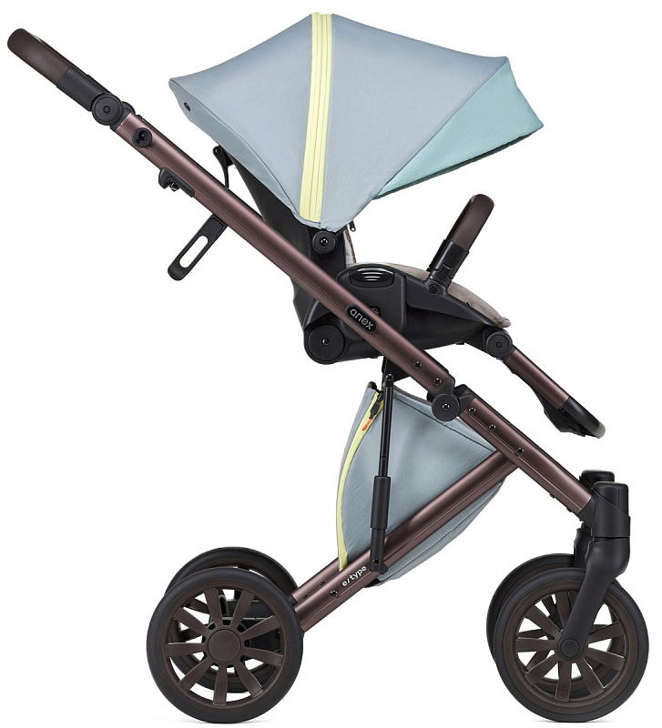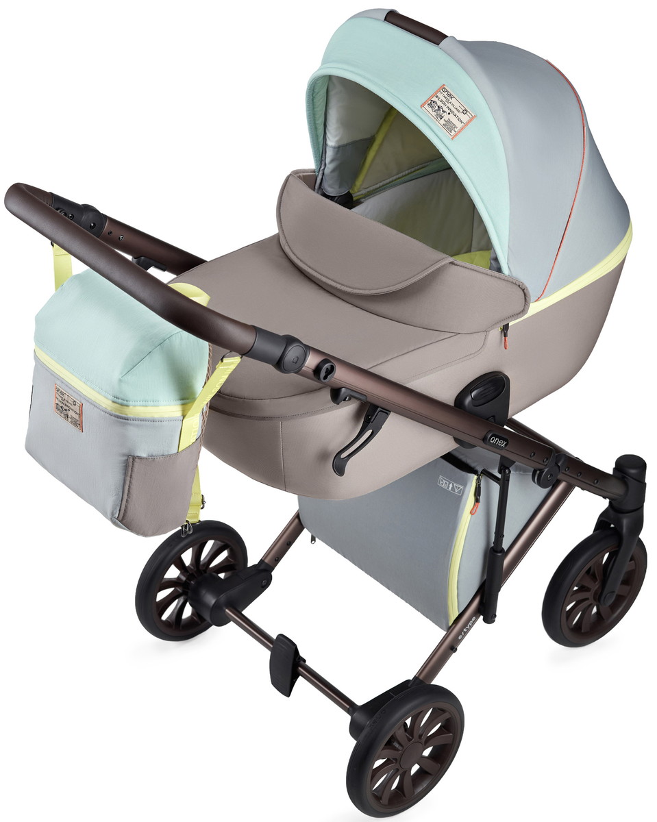 Anex e/type - это новое поколение колясок для людей, которые без ума от сбалансированного сочетания стиля и комфорта. Экокожа делает коляску одновременно естественной и необыкновенно элегантной. Небольшие, но прочные колеса обеспечивают мягкое движение в городской среде, а компактная и практичная сумка содержит все необходимое для матери и ребенка во время повседневных путешествий. Особенности колясок e/type основаны на удобстве использования для родителей, а также на комфорте и безопасности для детей.