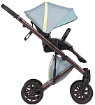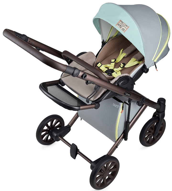 Система памяти кнопок поможет одной рукой изменить положение капюшона на люльке или блоке сиденья. В прогулочном блоке предусмотрена новая система регулировки спинки — откорректировать ее положение теперь проще. Пяти точечные ремни безопасности надежно удерживают малыша в коляске, но при этом не мешают ему двигаться. В коляске установлены колеса с системой Air Free, которые невозможно пробить и служат они в полтора раза дольше обычных. Рама в новой коляске складывается вместе с прогулочным блоком и теперь занимает меньше места в багажнике.