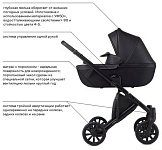 Поэтому коляска позволяет получить настоящее удовольствие от универсальных и вездеходных прогулок С первых дней малыша вы сможете оценить все преимущества большой и удобной люльки. Мы предусмотрели все что нужно для безопасных и комфортных прогулок самых маленьких — ортопедический двухслойный матрац в люльке, антиаллергеная хлопковая внутренняя поверхность. Экокожа предохраняет ребенка от прямых солнечных лучей и дождя. Кроме этого, рама оснащена автоматической системой защиты от случайного складывания. А система 3х-damper обеспечит плавность хода коляски. Anti-wobble система на поворотах стабилизирует колеса, что помогает одной рукой вести коляску. Если нужно остановиться, педаль Comfy stop поможет зафиксировать коляску на месте.