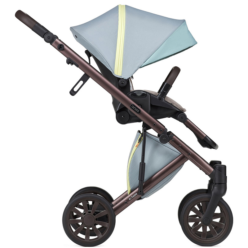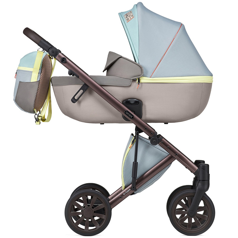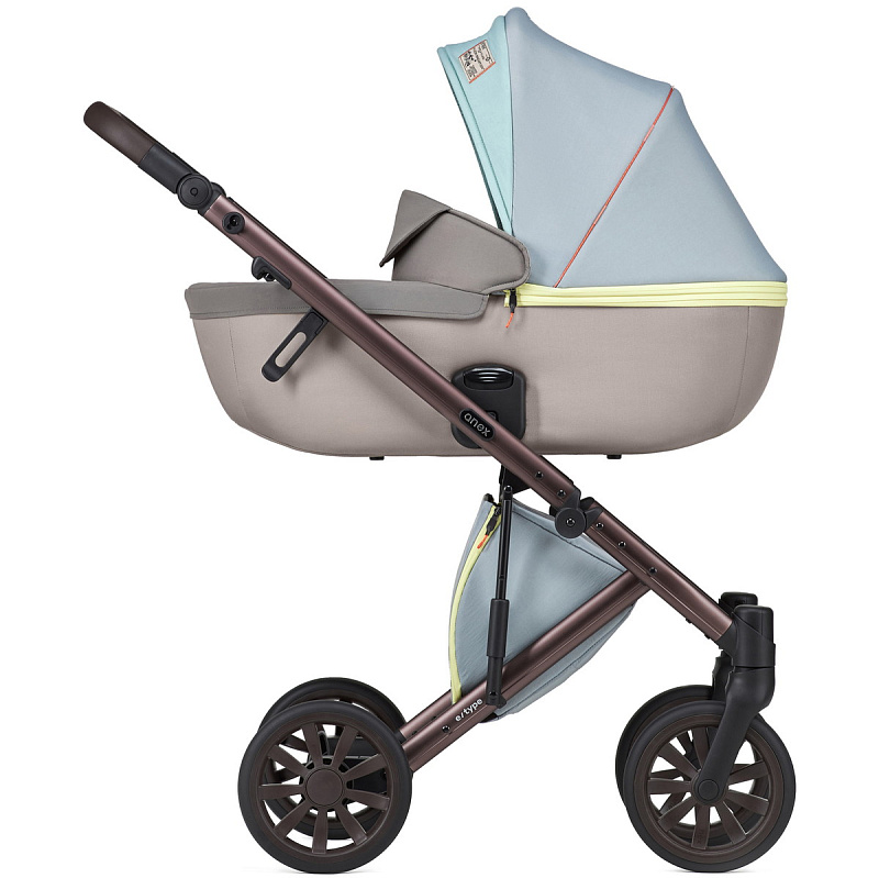 Anex e/type - это новое поколение колясок для людей, которые без ума от сбалансированного сочетания стиля и комфорта. Экокожа делает коляску одновременно естественной и необыкновенно элегантной. Небольшие, но прочные колеса обеспечивают мягкое движение в городской среде, а компактная и практичная сумка содержит все необходимое для матери и ребенка во время повседневных путешествий. Особенности колясок e/type основаны на удобстве использования для родителей, а также на комфорте и безопасности для детей. Поэтому коляска позволяет получить настоящее удовольствие от универсальных и вездеходных прогулок С первых дней малыша вы сможете оценить все преимущества большой и удобной люльки. Мы предусмотрели все что нужно для безопасных и комфортных прогулок самых маленьких — ортопедический двухслойный матрац в люльке, антиаллергеная хлопковая внутренняя поверхность. Экокожа предохраняет ребенка от прямых солнечных лучей и дождя. Кроме этого, рама оснащена автоматической системой защиты от случайного складывания. А система 3х-damper обеспечит плавность хода коляски. Anti-wobble система на поворотах стабилизирует колеса, что помогает одной рукой вести коляску. Если нужно остановиться, педаль Comfy stop поможет зафиксировать коляску на месте. Система памяти кнопок поможет одной рукой изменить положение капюшона на люльке или блоке сиденья. В прогулочном блоке предусмотрена новая система регулировки спинки — откорректировать ее положение теперь проще. Пяти точечные ремни безопасности надежно удерживают малыша в коляске, но при этом не мешают ему двигаться. В коляске установлены колеса с системой Air Free, которые невозможно пробить и служат они в полтора раза дольше обычных. Рама в новой коляске складывается вместе с прогулочным блоком и теперь занимает меньше места в багажнике.