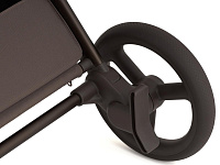 Рама складывается вместе с сиденьем в обоих направлениях. Сложенная коляска может стоять вертикально без опор, что позволяет оптимально использовать пространство. Для удобного переноса предусмотрена ручка.