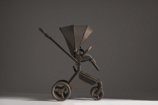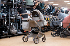 - Сложенная коляска устойчиво стоит самостоятельно, что позволяет максимально эффективно использовать пространство.