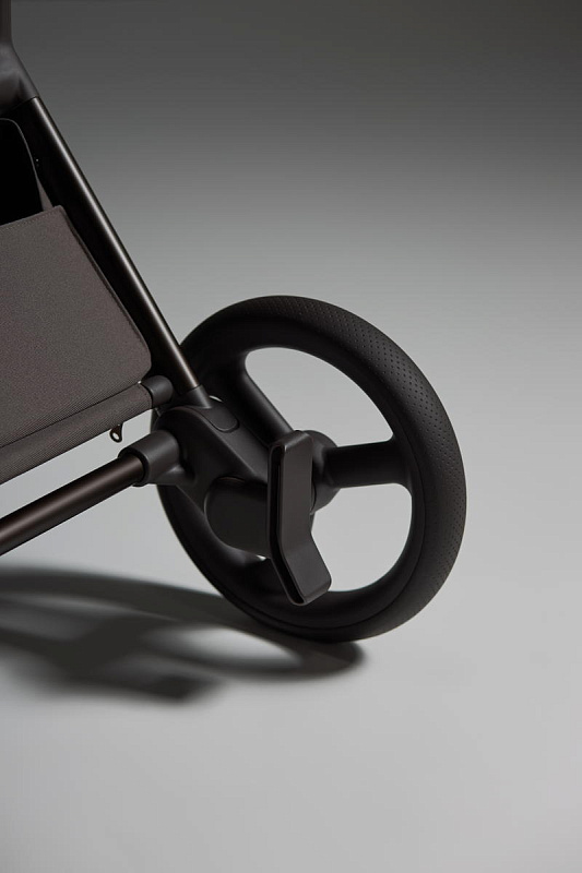 - Сложенная коляска устойчиво стоит самостоятельно, что позволяет максимально эффективно использовать пространство.