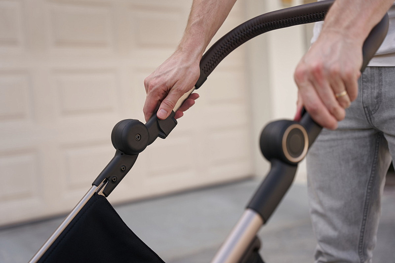 Шасси коляски 2 в 1 Anex iQ имеет два положения ручки, что позволяет выбрать подходящую высоту для родителей разного роста. Механизм складывания обладает амортизацией, что обеспечивает легкость и плавность процесса складывания.