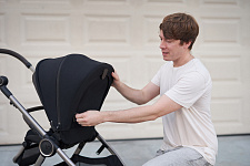 Капюшон коляски 2 в 1 Anex iQ с дополнительной секцией предоставляет дополнительную защиту от солнечных лучей и ветра. Он легко снимается, что облегчает использование люльки и обеспечивает возможность ее чистки.