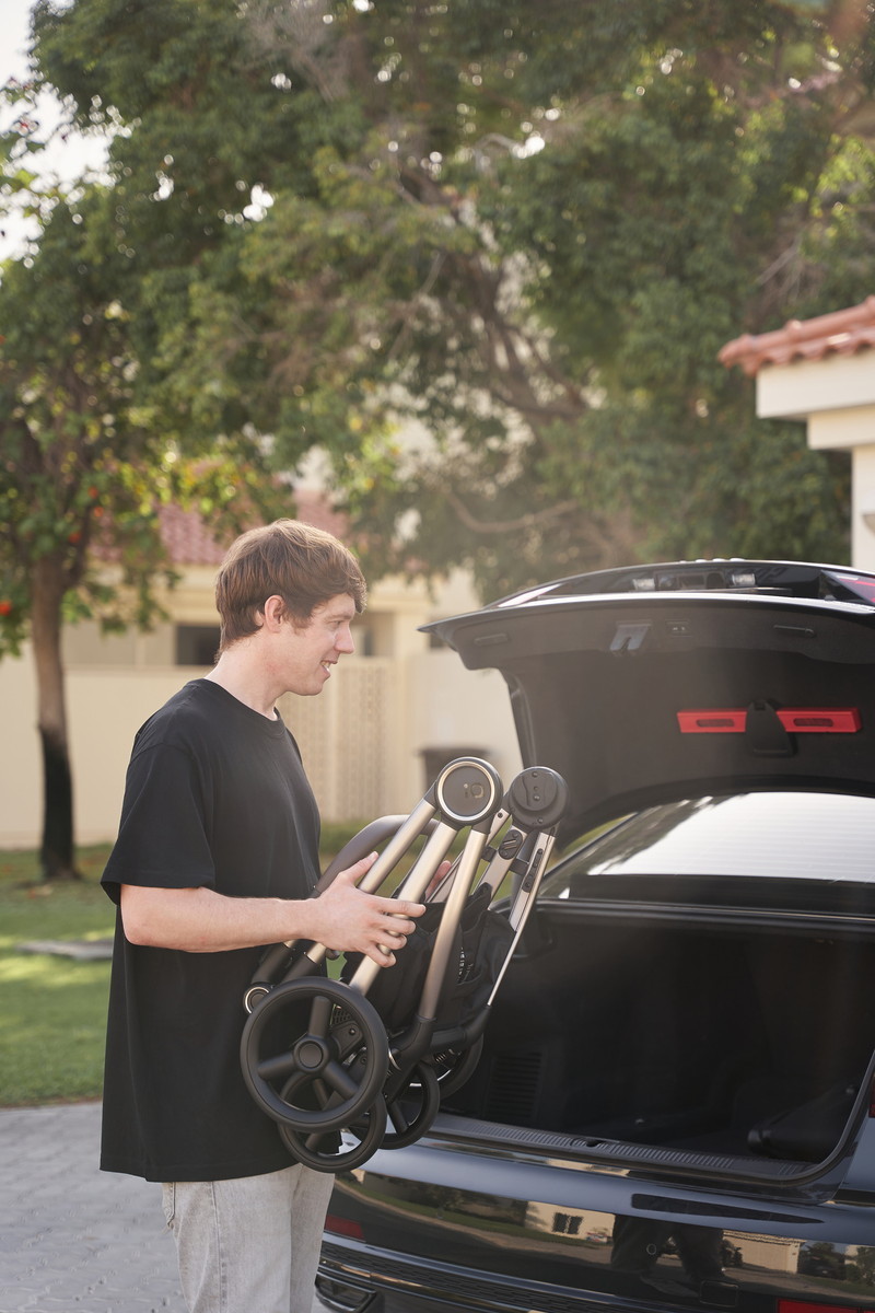 Регулируемая и прочная. Родители могут легко сузить раму, чтобы трансформировать коляску в прогулочную всего за 3 минуты.