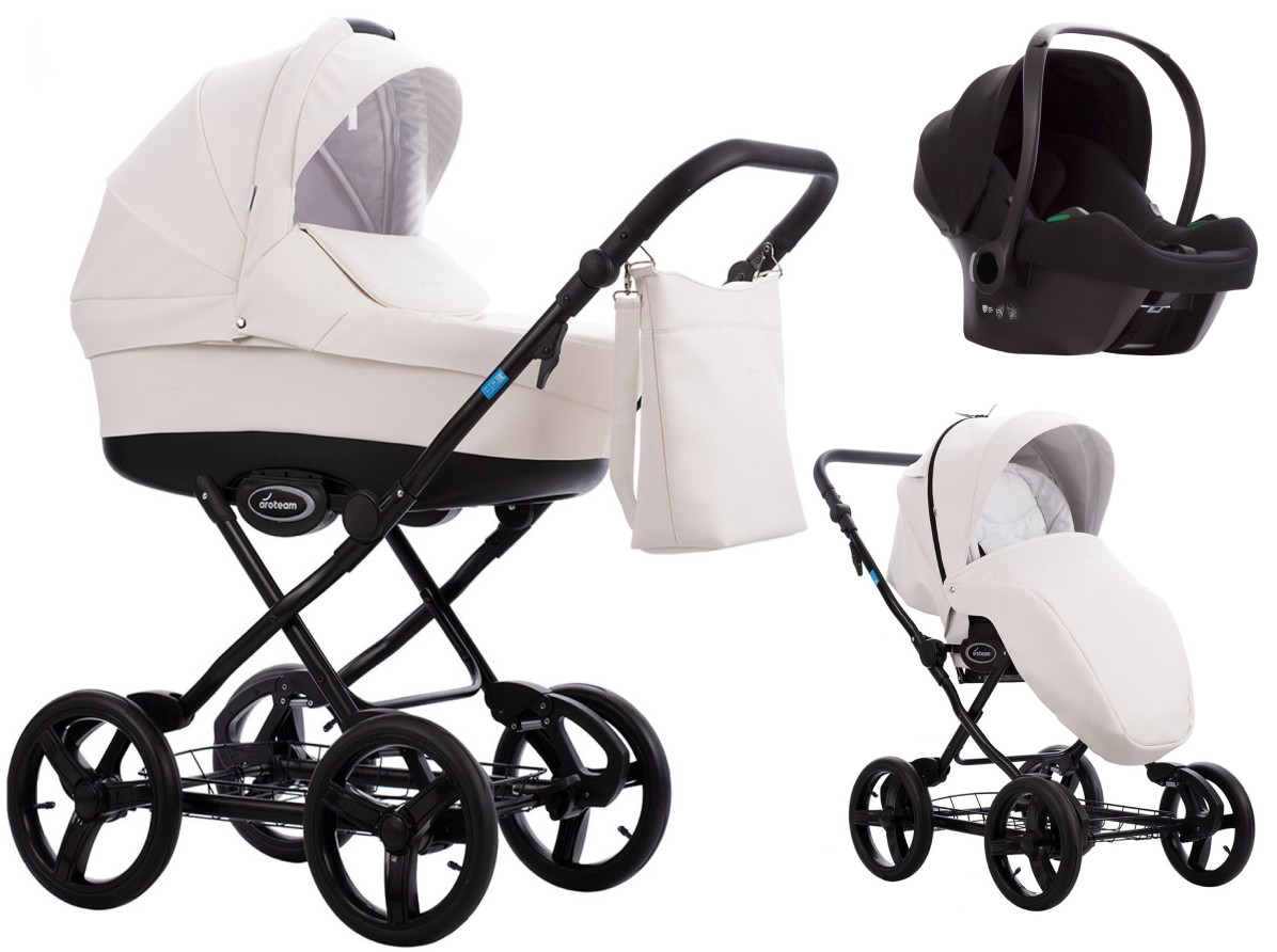 Детская коляска AroTeam Cocoline Prima 3 в 1 с автокреслом Avionaut Cosmo 08 белая кожа