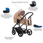 Конструкция данной коляски позволяет устанавливать на нее люльку, сиденье прогулочного блока или автомобильное кресло. Люлька и прогулочный блок реверсивные, их можно устанавливать как «лицом к маме», так и «лицом от мамы».