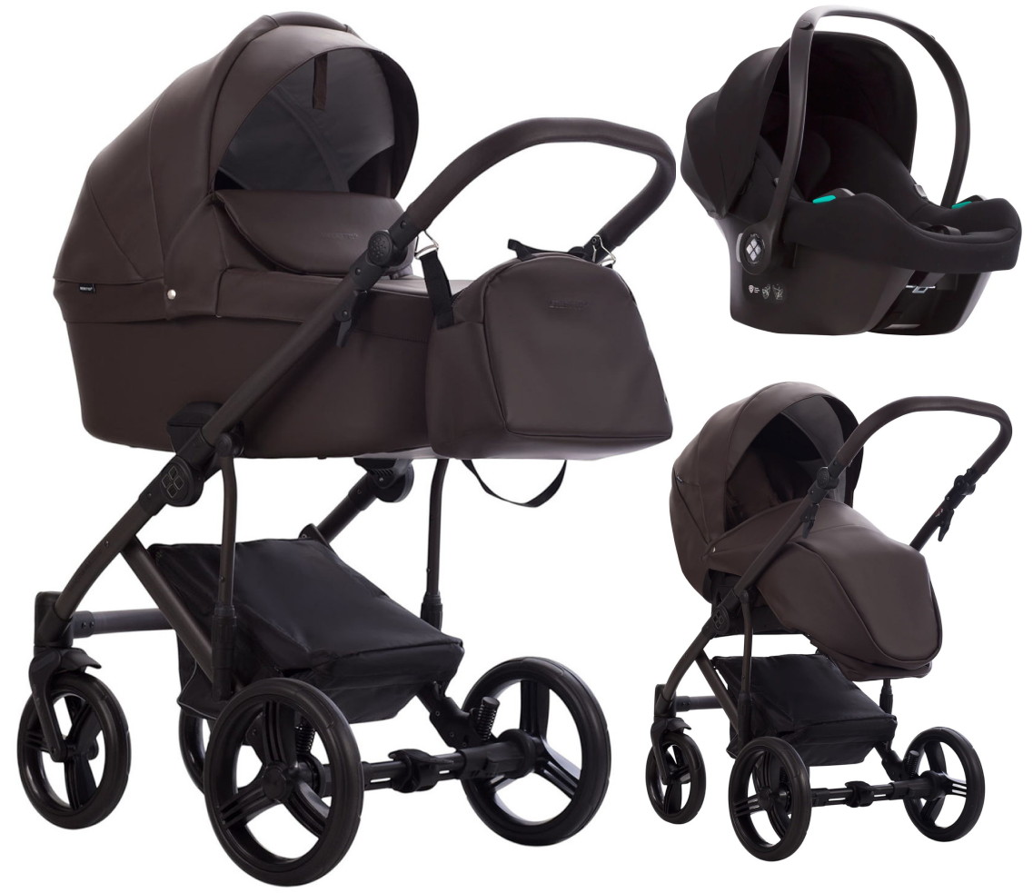 Детская коляска Bebetto Magnum Light Pro 3 в 1 с автокреслом Avionaut Cosmo 09 коричневая кожа, коричневая рама