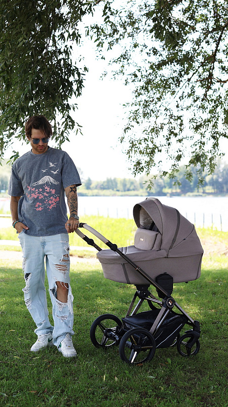 Модель выполнена из 100% экокожи, отличается эстетикой, простотой ухода и устойчивостью к погодным условиям. Просторная и лёгкая люлька с возможностью складывания в плоское состояние — настоящее спасение для небольших багажников и хранения дома. Расширенная система вентиляции обеспечивает циркуляцию воздуха со всех сторон, а матрасик с подголовником создаёт идеальные условия для отдыха новорождённого.