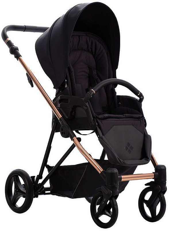 Инновационная конструкция включает уникальный клиновидный капюшон, придающий коляске неповторимый облик. Особое внимание заслуживает небольшой вес модели — всего 10,5 кг (шасси с люлькой).