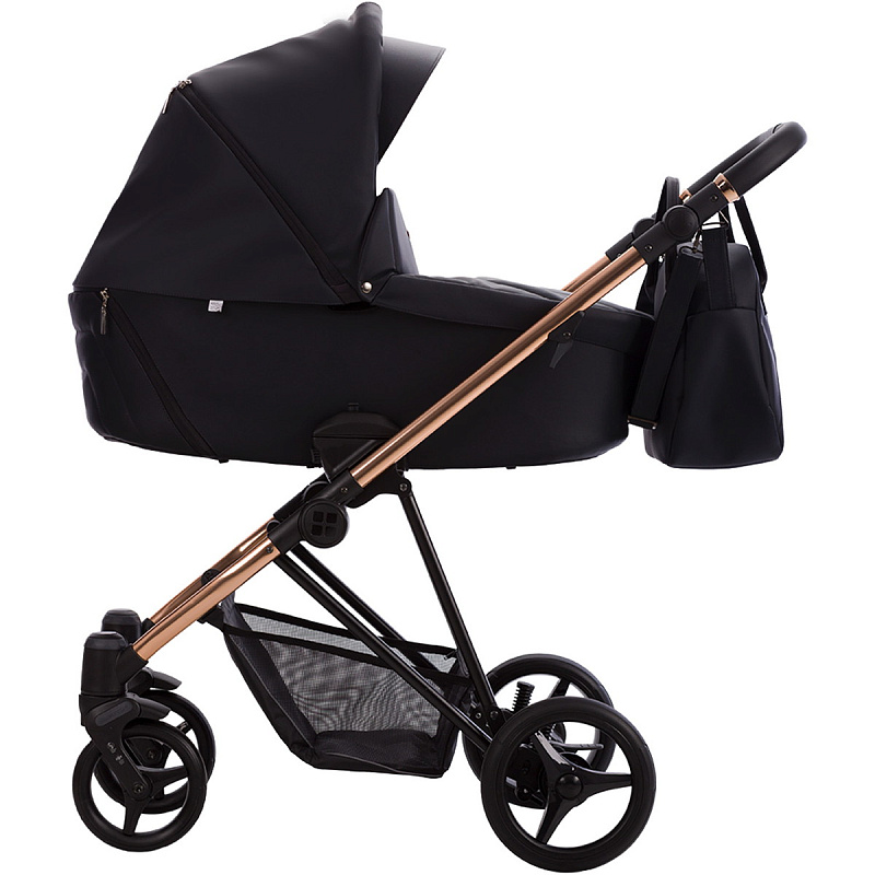 Детская коляска Bebetto Yoddi Premium Class 3 в 1 с автокреслом Avionaut Cosmo 02 черная кожа рама бронза